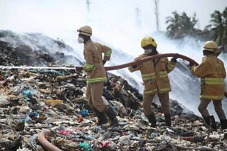 இந்நிலையில், ஞாயிற்றுக்கிழமை குப்பைக் கிடங்கின் ஒரு பகுதியில் தீ பற்றியது. அப்போது காற்று பலமாக வீசியதால் தீ பரவத்தொடங்கியது. இதனால் குப்பைக் கிடங்கில் பெரும்பகுதி எரிந்தது.
