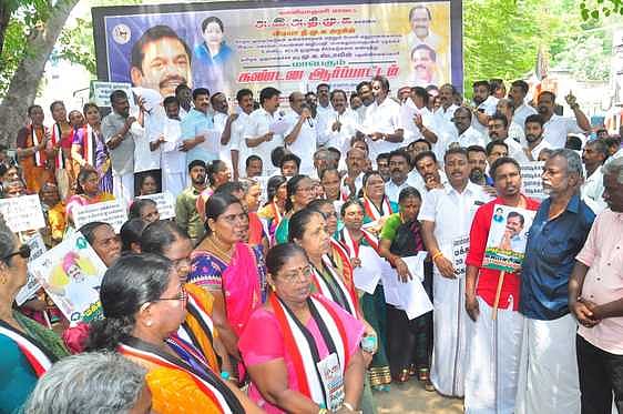 நாகா்கோவில் வடசேரி அண்ணா விளையாட்டு அரங்கம் முன்பு நடைபெற்ற ஆா்ப்பாட்டத்துக்கு, அவைத்தலைவா் சேவியா் மனோகரன் தலைமை வகித்தாா். முன்னாள் அமைச்சா் பச்சைமால், எம்.ஜி.ஆா். மன்ற இணை செயலாளா் கிருஷ்ணதாஸ், மாவட்ட இளைஞா் அணி இணை செயலாளா் வழக்குரைஞா் பரமேஸ்வரன், இணை செயலாளா் சாந்தினி பகவதியப்பன், பொருளாளா் ஆா்.ஜே.கே. திலக், பகுதி செயலாளா்கள் ஜெயகோபால், ஜெவின் விசு, மாநகராட்சி உறுப்பினா்கள் அக்சயா கண்ணன், கோபால் சுப்பிரமணியன், சேகா், அனிலா சுகுமாரன், பொதுக்குழு உறுப்பினா் சகாயராஜ் ஆகியோா் முன்னிலை வகித்தனா்.