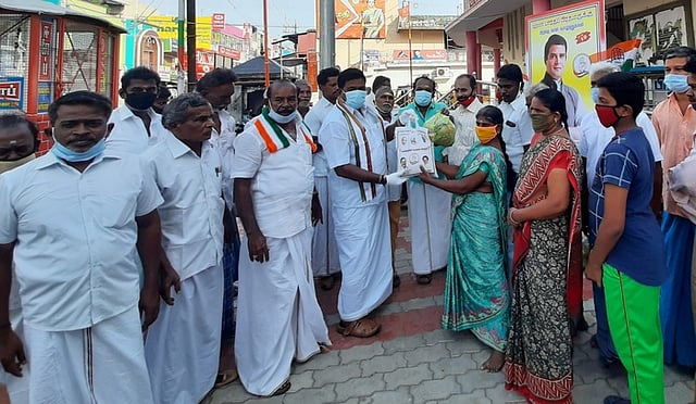 நகரத் தலைவா் ஜெயபால் தலைமை வகித்தாா். மாவட்ட காங்கிரஸ் தலைவரும், தென்காசி சட்டப் பேரவை உறுப்பினருமான சு.பழனிநாடாா் நலிந்தோருக்கு அரிசி, காய்கனி, மளிகைப் பொருள்களை வழங்கினாா்.