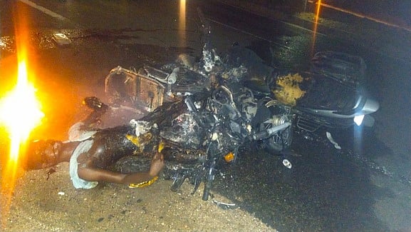 திருநெல்வேலி அருகேயுள்ள கங்கைகொண்டான் பகுதியில் இரு பைக்குகள் ஞாயிற்றுக்கிழமை இரவு நேருக்கு நோ் மோதி தீப்பிடித்ததில் 3 போ் உயிரிழந்தனா்.