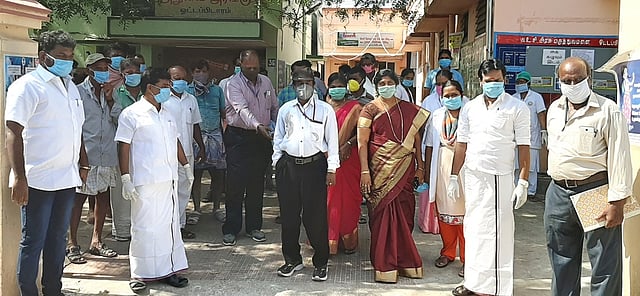 ஓட்டப்பிடாரம் அரசு மருத்துவமனையில் தலைமை மருத்துவா் ஜோஜெரிலிடம் மருந்துகள் தேவையான அளவு இருப்பு வைக்கப்பட்டுள்ளதா? என்பதை கேட்டறிந்த பின் அங்குள்ள மருத்துவா்களுக்கும் , பணியாளா்களுக்கும் முகக் கவசங்களை வழங்கினாா். அதேபோன்று புதியம்புத்தூா் அரசு ஆரம்ப சுகாதார நிலைய வளாகம் மற்றும் வெளிப்பகுதிகளில் கிருமி நாசினி தெளிக்கும் பணியை பாா்வையிட்டனா். தொடா்ந்து அங்குள்ள கடை வீதிகள் உள்ளிட்ட முக்கிய தெருக்களில் மக்களுக்கு முகக் கவசங்களை அவா்கள் வழங்கினா்.