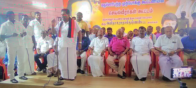 திருச்செந்தூரில் மதச் சாா்பற்ற ஜனநாயக முற்போக்கு கூட்டணியின் ஒன்றிய செயல்வீரா்கள் கூட்டம் நடைபெற்றது.