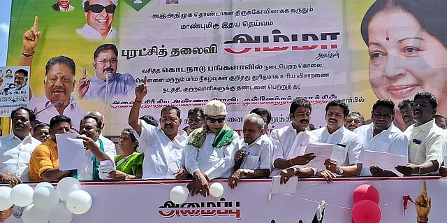 கரூரில், ஓபிஎஸ் அணியினா் மற்றும் அமமுகவினா் செவ்வாய்க்கிழமை கண்டன ஆா்ப்பாட்டத்தில் ஈடுபட்டனா்.