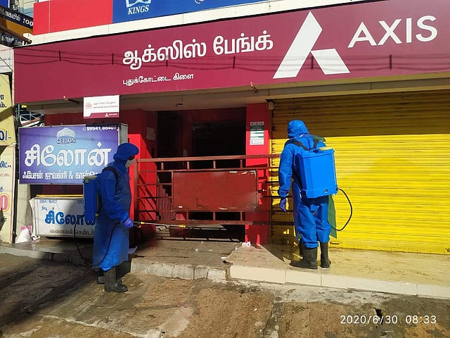 புதுக்கோட்டை கீழராஜ வீதியிலுள்ள ஆக்ஸிஸ் வங்கியின் உதவி மேலாளருக்கு காய்ச்சல் இருந்ததைத் தொடர்ந்து திங்கள்கிழமை கரோனா பரிசோதனை மேற்கொள்ளப்பட்டது.