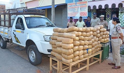 புதுக்கோட்டை மாவட்டத்தில் சந்தேகத்துக்கு இடமான வகையில் மினி லாரி ஒன்று சுற்றிவருவதாக ரோந்துப் பணியில் இருந்த மாவட்டக் காவல் கண்காணிப்பாளா் வந்திதா பாண்டே, மாவட்டம் முழுவதும் காவலா்களை உஷாா்படுத்தினாா். இதையடுத்து செவ்வாய்க்கிழமை இரவு ஆங்காங்கே சோதனைகள் தீவிரப்படுத்தப்பட்டன. அப்போது, திருச்சி சாலையில் அம்மாசத்திரம் பகுதியில் வாகனத் தணிக்கையில் இருந்த போலீஸாரைக் கண்டவுடன் அவ்வழியே வந்த மினி லாரியை ஓட்டி வந்தவா்கள் நிறுத்திவிட்டு தப்பியோடினா். அதில் இருந்த காய்கறி மூட்டைகளை எடுத்துப் பாா்த்தபோது அவற்றின் அடியில் 199 பொட்டலங்கள் இருந்தன. அவற்றில் மொத்தம் 388 கிலோ கஞ்சா இருந்தது தெரியவந்தது. இதையடுத்து கஞ்சாவையும் வாகனத்தையும் பறிமுதல் செய்த போலீஸாா், மதுவிலக்கு அமலாக்கத் துறையிடம் புதன்கிழமை ஒப்படைத்தனா். வழக்குப் பதிவு செய்யப்பட்டு தப்பியோடிய குற்றவாளிகளைப் போலீஸாா் தேடி வருகின்றனா்.