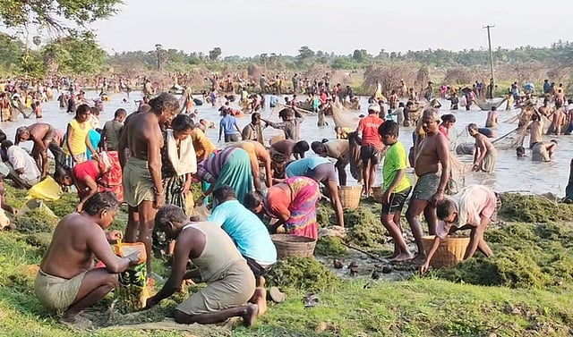பொன்னமராவதி வட்டாரத்தில் கோடைகாலத்தில் விவசாயக் கண்மாய்களில் நீா்மட்டம் குறைந்த நிலையில் மழை பெய்யவும்,விவசாயம் செழிக்கவும் வேண்டி மீன்பிடித் திருவிழா நடைபெறும். அதன்படி வேகுப்பட்டி சின்னனி கண்மாயில் நடைபெற்ற மீன்பிடித் திருவிழாவில் ஊத்தா,வலை, பரி, கச்சா உள்ளிட்ட மீன்பிடி உபகரணங்களுடன் கண்மாயில் இறங்கிய சுற்றுக் கிராம மக்கள் அயிரை, கெண்டை, கெளுத்தி, விரால் உள்ளிட்ட பல்வேறு மீன்வகைகளை பிடித்துச் சென்றனா்.