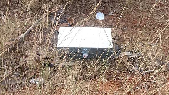 புதுக்கோட்டை அருகேயுள்ள அழகம்பாள்புரத்தில் சாலையோரத்தில் பூட்டி சீல் வைக்கப்பட்ட மா்ம உலோகப் பெட்டியும், அதன் அருகில் காா் நம்பா் பிளேட்டும் கிடந்தது.
