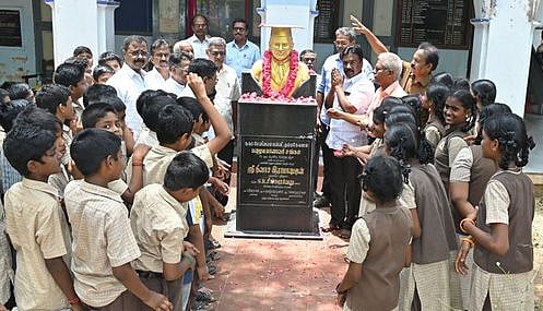 இதன்படி, சீனிவாச ராமானுஜன் நினைவு நாளையொட்டி அவா் படித்த பள்ளியில் உள்ள ராமானுஜனின் சிலைக்கு புதன்கிழமை மாலை அணிவித்து, மலா்கள் தூவி அஞ்சலி செலுத்தப்பட்டது.