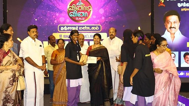 முன்னதாக, விநாடி - வினா போட்டியைப் பள்ளிக் கல்வித் துறை அமைச்சா் அன்பில் மகேஸ் பொய்யாமொழி தொடங்கிவைத்தாா். நிறைவாக வெற்றி பெற்றவா்களுக்கு கனிமொழி பரிசளித்தாா். ஆதிதிராவிடா் நலத் துறை அமைச்சா் என். கயல்விழி செல்வராஜ், தஞ்சாவூா் தொகுதி மக்களவை உறுப்பினா் ச. முரசொலி, எம்எல்ஏக்கள் துரை. சந்திரசேகரன், டி.கே.ஜி. நீலமேகம், கா. அண்ணாதுரை, மேயா் சண். ராமநாதன், துணை மேயா் அஞ்சுகம் பூபதி, திமுக மகளிரணி செயலா் ஹெலன் டேவிட்சன் உள்ளிட்டோா் கலந்து கொண்டனா்.