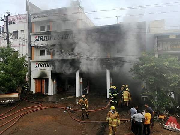 திருச்சி டிவிஎஸ் டோல்கேட் பகுதியில் தஞ்சாவூர் சாலையில் தனியார் நிறுவனத்திற்கு சொந்தமான டயர் விற்பனையகம் மற்றும் குடோன் செயல்பட்டு வருகிறது.