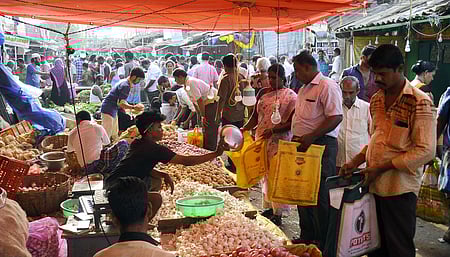 இந்நிலையில் திருச்சி காந்திசந்தையில் சனிக்கிழமை அதிகாலை முதல் காய்கள், பழங்கள் வாங்கும் மக்களின் கூட்டம் வழக்கத்தை விட அதிகமாக இருந்தது. காய்கனிகளின் வரத்து மற்ற நாள்களை காட்டிலும் அதிகரித்திருந்த போதிலும், வெள்ளிக்கிழமை விற்ற விலையைக் காட்டிலும் சனிக்கிழமை இரு மடங்கு அதிகரித்திருந்தது. ரூ. 10க்கு விற்பனை செய்யப்பட்ட கத்திரிக்காய் ரூ.50 முதல் 60 வரையும், தக்காளி ரூ. 10 லிருந்து ரூ.20க்கும், பீட்ரூட் ரூ.10 லிருந்து ரூ.25க்கும், முள்ளங்கி ரூ.15 லிருந்து ரூ.30க்கும் விற்பனை செய்யப்பட்டது. ஆனால் பழங்களின் விலை சரிவை எட்டியது குறிப்பிடத்தக்கது.