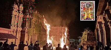 ஸ்ரீரங்கம் அரங்கநாதசுவாமி திருக்கோயிலில் திருக்காா்த்திகை தீபத் திருவிழாவையொட்டி, திங்கள்கிழமை இரவு சொக்கப்பனை கொளுத்தும் நிகழ்வு நடைபெற்றது.