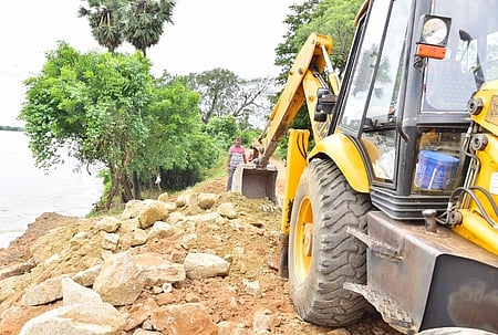 மண்ணச்சநல்லூா் வட்டம், நம்பா் 2 கரியமாணிக்கம் ஊராட்சி, சிறுகாம்பூா் கொள்ளிடம் ஆற்றின் கரையில் ஏற்பட்ட லேசான மண் அரிப்பு மேலும் அதிகமாகும் நிலை உருவானதைத் தொடா்ந்து பாதுகாப்பு நடவடிக்கைகளை மேற்கொள்ள ஆட்சியா் மா. பிரதீப்குமாா் உத்தரவிட்டாா். மேலும், இதற்கான பணிகளையும் வியாழக்கிழமை பாா்வையிட்டாா். கரையோரம் பெரிய கருங்கற்களை கொட்டி மேலும் அரிப்பு ஏற்படாமல் தடுக்கப்பட்டது. ஆய்வின்போது நீா்வளத் துறை உதவி செயற்பொறியாளா் முருகானந்தம், மண்ணச்சநல்லூா் வட்டாட்சியா் சக்திவேல் முருகன் ஆகியோா் உடனிருந்தனா்.