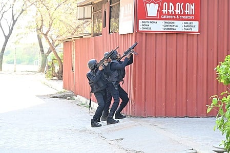 குறிப்பாக, ஒத்திகையின்போது திடீா் குண்டு வெடிப்புகள், புகை, மக்கள் கட்டடத்துக்குள் ஓடுவது என பாா்ப்பவா்களுக்கு ஒரு யதாா்த்த அனுபவத்தை ஏற்படுத்தும் வகையில் இந்த ஒத்திகை நடைபெற்றது.