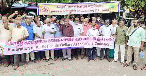 தங்களது கோரிக்கைகளை வலியுறுத்தி, கடலூரில் அனைத்து குடியிருப்போா் நலச் சங்கங்களின் கூட்டமைப்பினா் திங்கள்கிழமை ஆா்ப்பாட்டத்தில் ஈடுபட்டனா்.