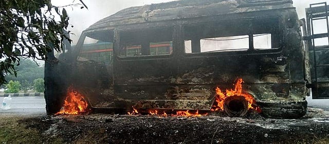 கடலூர் மாவட்டம், ராமநத்தம் அருகே ஐயப்ப பக்தர்கள் பயணித்த வாகனம் ஞாயிற்றுக்கிழமை (டிசம்பர் 25) காலை தீப்பிடித்து எரிந்து நாசமானது.