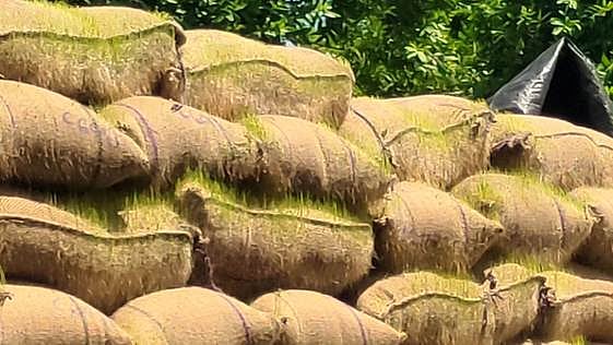ஐந்துக்கும் மேற்பட்ட லாரிகளில் இவ்வாறு நெல் மூட்டைகள் நனைந்து முளைவிட்டுள்ளன.