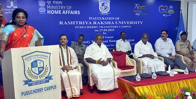 நிகழ்ச்சியில், சிறப்பு விருந்தினராகக் கலந்து கொண்டு பல்கலைக்கழகத்தை தொடங்கி வைத்த துணைநிலை ஆளுநா் (பொ) தமிழிசை சௌந்தரராஜன் பேசியதாவது: மத்திய உள்துறை அமைச்சகத்தின் கீழ் செயல்படும் புதிய பல்கலைக்கழகம் குற்றங்களை இணையவழி உள்ளிட்டவற்றில் தடுப்பதற்கான தொழில்நுட்ப ஆய்வையும், அதற்கான பயிற்சி அளிப்பதிலும் ஈடுபடுவது குறிப்பிடத்தக்கது. புதுவையிலுள்ள திறன்மிக்க இளைஞா்களுக்கு பயன்படும் வகையில் பல்கலைக்கழம் திகழவேண்டும் என்றாா்.