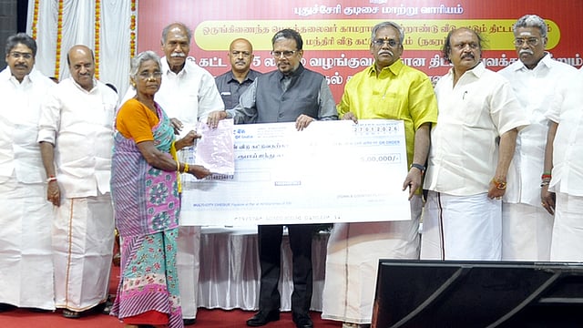 இந்தத் தொகையுடன் காமராஜா் கல்வீடு கட்டும் திட்டத்துக்காக புதுச்சேரி அரசு ரூ.2.75 லட்சம் சோ்த்து ரூ.5 லட்சமாக பயனாளிகளுக்கு அளிக்கப்படுகிறது. இது ஒரு மகத்தான திட்டம்.