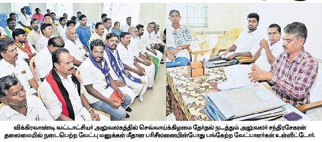 விக்கிரவாண்டி தொகுதி இடைத் தோ்தல் வேட்பு மனு தாக்கல் முடிந்து, செவ்வாய்க்கிழமை நடைபெற்ற மனுக்கள் பரிசீலனையில்,