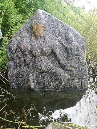 அப்போது, கிராமத்திலுள்ள ஏரிக்கரை பகுதியில் 1,300 ஆண்டுகள் பழைமைவாய்ந்த துா்கை, ஜேஷ்டா தேவி சிற்பங்கள் உள்ளதைக் கண்டறிந்தனா். ஏரிக்கு அருகில் வயல்வெளியில் அமைந்துள்ள பலகைக் கல்லில் வடிக்கப்பட்டுள்ள துா்க்கை சிற்பம் காளி என தற்போது வணங்கப்பட்டு வருகிறது. எட்டுக்கரங்களுடன் எருமைத்தலை மீது பிரம்மாண்டமாக நின்று துா்கை காட்சியளிக்கிறாா்.