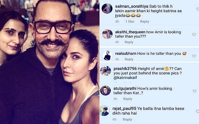 தற்போது ‘தக்ஸ் ஆஃப் ஹிந்துஸ்தான்’ திரைப்படத்தின் படப்பிடிப்புகளில் பிஸியாக இருக்கும் அமீர்கான், சமீபத்தில் சக நடிகையும், சினேகிதியுமான காத்ரீனா கைஃபுடன் இணைந்து எடுத்துக் கொண்ட செல்ஃபீ ஒன்றை, அவர்களுடன் அதே புகைப்படத்தில் இடம் பிடித்த இன்னொரு நடிகையான ஃபாத்திமா இன்ஸ்டாகிராமில் பகிர்ந்திருந்தார். அந்தப் படத்தைக் கண்ணில் கண்ட மாத்திரத்தில் ரசிகர்கள் அமீர்கானின் உயரத்தைக் காரணமாக வைத்து அவரையும் காத்ரீனாவையும் ட்விட்டரிலும், இன்ஸ்டாகிராமிலுமாகக் கலாய்க்கத் தொடங்கி விட்டனர்.