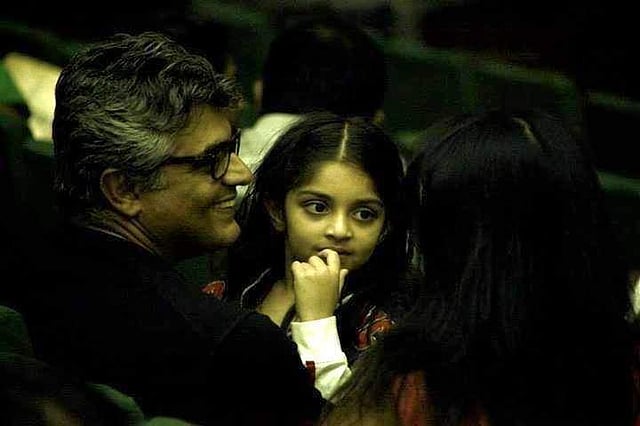 நடிகர் அஜித் மகள் அனோஷ்காவுடன்
