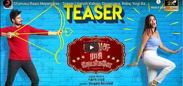 ஹரிஷ் கல்யாண், ரெபா மோனிகா ஜான், டிகன்கானா சூர்யவன்ஷி, யோகி பாபு நடிப்பில் சஞ்சய் பாரதி இயக்கத்தில் உருவாகியுள்ள படம் - தனுசு ராசி நேயர்களே. நடிகரும் இயக்குநருமான சந்தான பாரதியின் மகனான சஞ்சய் பாரதி இயக்கும் முதல் படம் இது. ஜிப்ரான் இசையமைத்துள்ள தனுசு ராசி நேயர்களே படத்தின் டீசர் வெளியாகியுள்ளது.