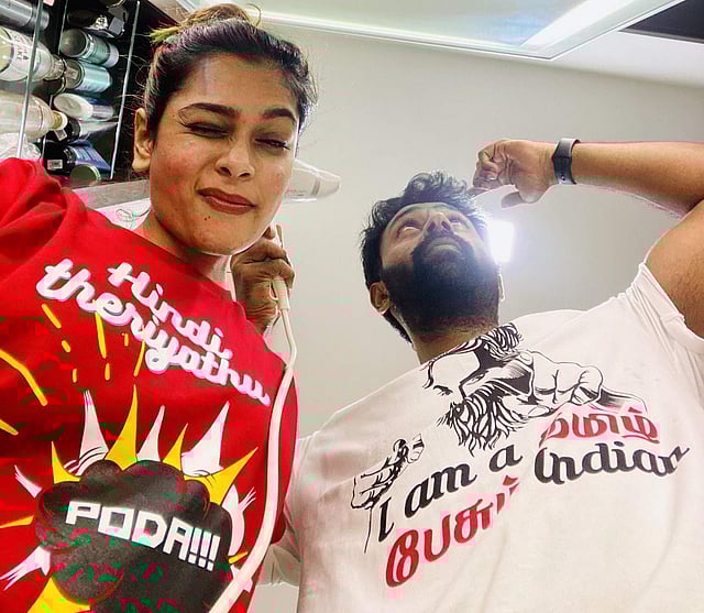 சனிக்கிழமையன்று இசையமைப்பாளர் யுவன் சங்கர் ராஜாவும் மெட்ரோ படத்தில் நடித்த ஷிரிஷ் சரவணனும் இணைந்து எடுத்த புகைப்படங்கள் சமூகவலைத்தளங்களில் அதிகமாகப் பகிரப்பட்டன. ஐ ஆம் ஏ தமிழ் பேசும் இந்தியன் (I am a தமிழ் பேசும் Indian), ஹிந்தி தெரியாது போடா (Hindi theriyathu Podaa) என ஆங்கிலத்தில் எழுதப்பட்ட வாசகங்கள் கொண்ட டி ஷர்ட்களை இருவரும் அணிந்திருந்தார்கள்.