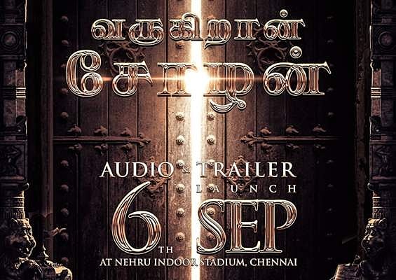 மணிரத்னம் இயக்கிய பொன்னியின் செல்வன் படத்தின் இசை மற்றும் டிரெய்லர் செப்.6 ஆம் தேதி வெளியாகுமென அதிகாரப்பூர்வ அறிவிப்பு வெளியாகியுள்ளது.