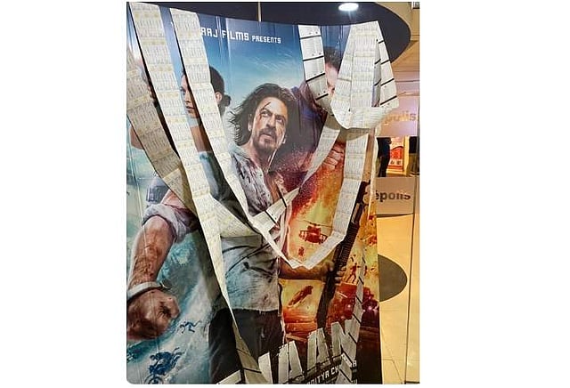 பதான் படத்திற்கு வாங்கிய டிக்கெட்டுகளை சரமாக போஸ்டர் மீது தொங்கவிட்ட ரசிகரை, ஷாருக்கான் கலாய்த்துள்ளார்.