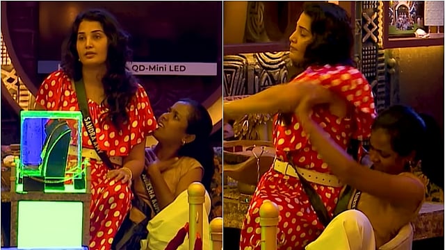 சுபிக்ஷாவை வெளியேற்ற முயற்சித்தும் முடியாததால், அவர் மீது சான்ட்ரா அமர்ந்துகொண்டு அவருக்கு இடையூறு ஏற்படுத்துகிறார். அப்போது சுபிக்ஷாவை தாக்கவும் செய்கிறார். இந்த விடியோ இணையத்தில் பலரால் பகிரப்பட்டு வருகிறது.