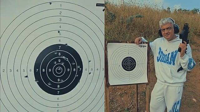 நடிகர் அஜித் குமாரின் துப்பாக்கி சுடுதல் விடியோ வெளியாகி சமூக வலைதளத்தில் கவனம் ஈர்த்து வருகிறது.