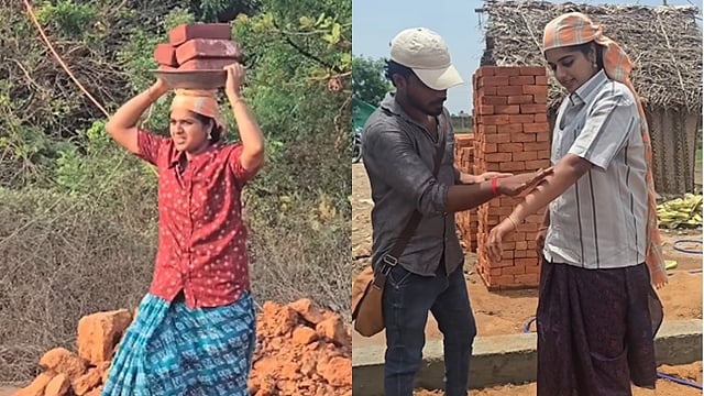 Serial actress Sathya Devarajan transformed into a construction worker for the series dhanam in vijay tv.