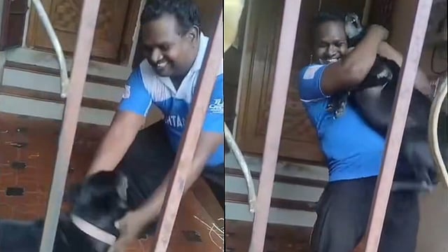 அவரின் பதிவில், தனது வளர்ப்பு நாய் நீண்ட நாள்கள் கழித்து தன்னைப் பார்த்த மகிழ்ச்சியில் துள்ளிக் குதித்து விளையாடியதைப் பகிர்ந்துள்ளார்.