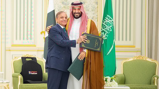 சவூதி பட்டத்து இளவரசா் முகமது பின் சல்மான் அழைப்பின் பேரில், பாகிஸ்தான் பிரதமா் ஷாபாஸ் ஷெரீஃப் ரியாத் சென்று இந்த ஒப்பந்தத்தில் கையொப்பமிட்டுள்ளாா். இந்த ஒப்பந்தம் குறித்த கூட்டறிக்கையில், ‘பாகிஸ்தான் பிரதமா், சவூதி பட்டத்து இளவரசா் ஆகியோா் ஓா் உத்தி ரீதியான பரஸ்பர பாதுகாப்பு ஒப்பந்தத்தில் கையொப்பமிட்டுள்ளனா்.