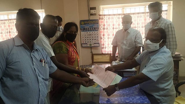 தேர்தல் நடத்தும் அலுவலர் முருகானந்தத்திடம் அவர் தனது வேட்பு மனுவை தாக்கல் செய்தார். அவருக்கு மாற்று வேட்பாளராக வெ.வீரலட்சுமி என்பவர் மனு தாக்கல் செய்தார்.