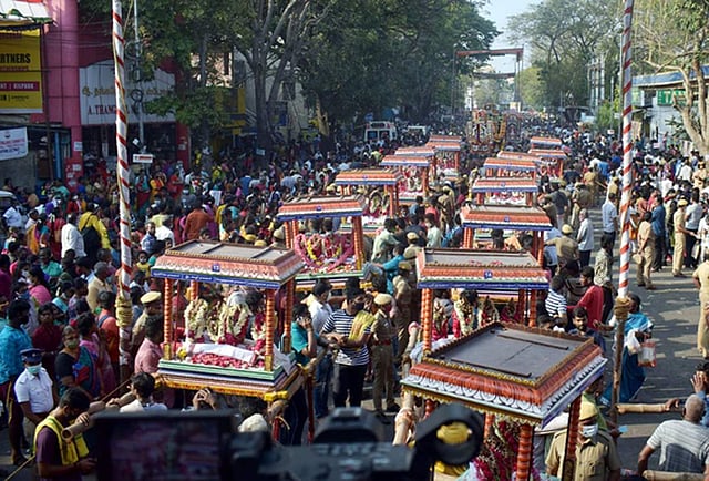 மயிலாப்பூரில் அலங்கரிக்கப்பட்ட வெள்ளி சப்பரத்தில் கற்பகாம்பாள் உடனுறை கபாலீஸ்வரர் எழுந்தருளினார். இந்த கண்கொள்ளா காட்சியை காண விடிய விடிய மாட வீதிகளில் அலைமோதிய கூட்டம்.மலர்களால் அலங்கரிக்கப்பட்ட பல்லக்கில் வரும் 63 நாயன்மார்களின் வீதி உலாவை காண வந்த பக்தர்கள்.திரளான பக்தர்கள் கலந்து கொண்டு சாமி தரிசனம் செய்தனர்.பல்லக்குகள் முக்கிய வீதிகளில் வலம் வந்து மீண்டும் கோவிலை வந்தடைந்தது.
