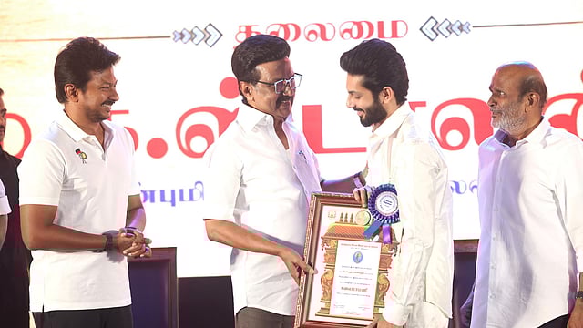 திரைப்பட நடிகர் திரு. எஸ்.ஜே.சூர்யா அவர்களுக்கு கலைமாமணி விருது மற்றும் விருதிற்கான 3 சவரன் தங்கப் பதக்கம் மற்றும் விருது பட்டயத்தையும் வழங்கி கெளரவித்த முதல்வர் மு.க. ஸ்டாலின்.திரைப்பட இயக்குநர் திரு. லிங்குசாமி அவர்களுக்கு கலைமாமணி விருது மற்றும் விருதிற்கான 3 சவரன் தங்கப் பதக்கம் மற்றும் விருது பட்டயத்தையும் வழங்கி கெளரவித்த முதல்வர் மு.க. ஸ்டாலின்.தவில் கலைஞர் திரு. திருக்கடையூர் டி.ஜி. பாபுவுக்கு கலைமாமணி விருது மற்றும் விருதிற்கான 3 சவரன் தங்கப் பதக்கம் மற்றும் விருது பட்டயத்தையும் வழங்கி கெளரவித்த முதல்வர் மு.க. ஸ்டாலின்.