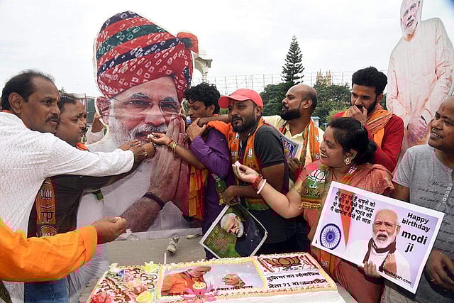 பிரதமர் மோடியின் பிறந்தநாளை முன்னிட்டு பாஜக சார்பில் நாடு முழுவதும் பாஜகவினர் கேக் வெட்டியும், பொதுமக்களுக்கு இனிப்பு வழங்கியும் உற்சாகமாக கொண்டாடினர்.