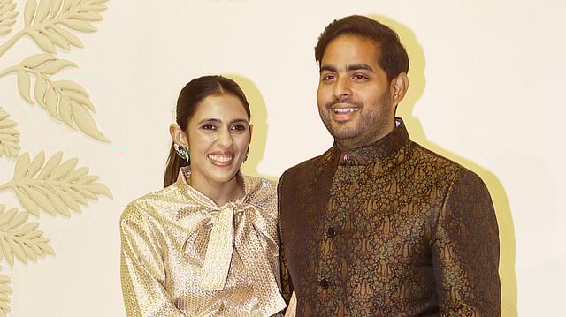 மும்பையில் இந்திய கைவினைஞர்களைக் கொண்டாடும் வகையில், 'ஸ்வதேஷ்' கடையின் தொடக்க விழாவில் பங்கேற்ற வந்த ரிலையன்ஸ் ஜியோ இன்ஃபோகாம் லிமிடெட் தலைவர் ஆகாஷ் அம்பானி மற்றும் அவரது மனைவி ஸ்லோகா மேத்தா.