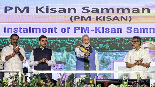 கோயம்புத்தூரில் நடைபெற்ற தென்னிந்திய இயற்கை வேளாண்மை உச்சி மாநாடு - 2025 தொடக்க விழாவில், பிரதமர் நரேந்திர மோடி, தமிழக ஆளுநர் ஆர்.என். ரவி, இடமிருந்து இரண்டாவதாக மற்றும் மத்திய இணை அமைச்சர் எல். முருகன் உள்ளிட்டோர்.
