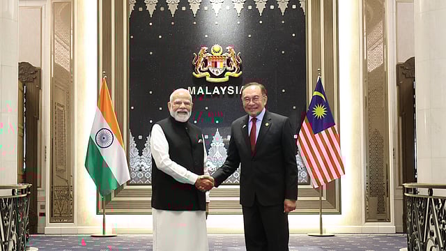 இரண்டு நாள் அரசுமுறை பயணமாக மலேசியாவுக்கு சென்றுள்ள பிரதமர் நரேந்திர மோடிக்கு, அந்த நாட்டின் பிரதமர் அன்வர் இப்ராஹிம் உற்சாக வரவேற்பு அளித்தார்.