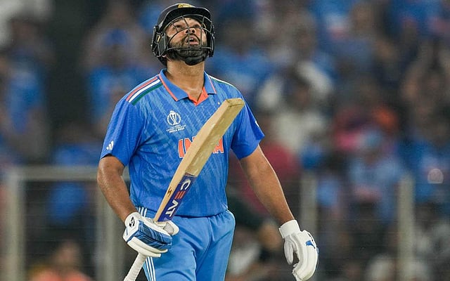 இந்தியா-பாகிஸ்தான் அணிகளுக்கு இடையிலான ஐசிசி ஆண்கள் கிரிக்கெட் 2023 போட்டியின் போது அரைசதம் அடித்து அசத்திய ரோஹித் சர்மா.