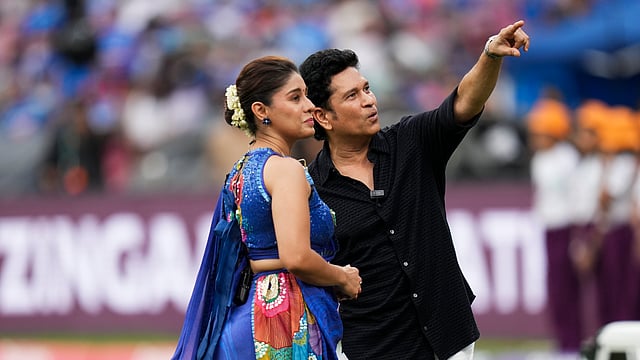 நவி மும்பையில் உள்ள டி ஒய் பாட்டீல் மைதானத்தில், இந்திய மகளிர் அணிக்கும் தென்னாப்பிரிக்க மகளிர் அணிக்கும் இடையிலான ஐ.சி.சி. மகளிர் உலகக் கோப்பை இறுதி ஒருநாள் கிரிக்கெட் போட்டிக்கு முன், கிரிக்கெட் ஜாம்பவான் சச்சின் டெண்டுல்கர் உடன் பாலிவுட் பாடகி சுனிதி செளகான். Kunal Patil