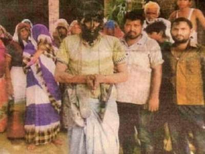 இதனைத் தொடர்ந்து விசாரிக்கும் பொருட்டு அவரைச் சூழ்ந்த பெண்கள் உள்ளிட்ட கிராமத்தார் சேர்ந்து அவரைத் தாக்கியுள்ளனர். தங்கள் கையில் வைத்திருந்த துடைப்பம், தடி ஆகியவற்றைக் கொண்டு சரமாரியாக அவரைத் தாக்கியுள்ளனர். மேலும் அவரை ஊர்வலமாக அழைத்துச் சென்று முகத்தில் கருப்பு மை பூசியவர்கள், செருப்பு மாலையும் போட்டுள்ளனர். விட்டு விடுமாறு கெஞ்சிய அவரது வேண்டுகோளினை அவர்கள் காதில் வாங்கவே இல்லை.