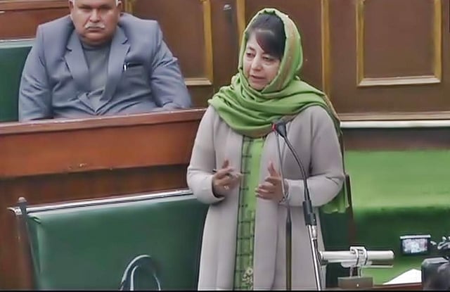 ஜம்மு-காஷ்மீரில் நடந்து முடிந்த சட்டப்பேரவைத் தேர்தலில் அம்மாநிலத்தைச் சேர்ந்த பிடிபி கட்சி பாஜக-வுடன் கூட்டணி அமைத்தது தொடர்பாக நிலைமை பிடிபி கட்சித் தலைவரும், அம்மாநில முதல்வருமான மெஹபூபா முஃப்தி, சட்டப்பேரவையில் திங்கள்கிழமை பேசினார்.