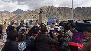 ஜம்மு-காஷ்மீர் மாநிலத்துக்கு சனிக்கிழமை பல்வேறு நலத் திட்டங்களை தொடங்கி வைக்கும் பொருட்டு பிரதமர் நரேந்திர மோடி சென்றுள்ளார். லடாக் பகுதியில் உள்ள லே விமான நிலையத்தில் அவரை மாநில ஆளுநர் வோரா மற்றும் முதல்வர் மெஹபூபா முப்தி ஆகிய இருவரும் வரவேற்றனர்