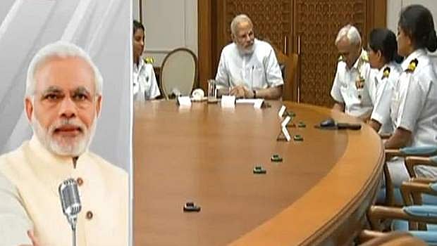 அதுமட்டுமல்லாமல் இந்த நிகழ்வில் 254 நாட்கள் பாய்மர படகு மூலம் கடல்வழியாக உலகை சுற்றிவந்த கடற்படை வீராங்கனைகளுக்கு பாராட்டு தெரிவித்தார். பெண்கள் கடற்படையில் இணைய முன் வரவேண்டும் என்று கோரிக்கை வைத்தார்.