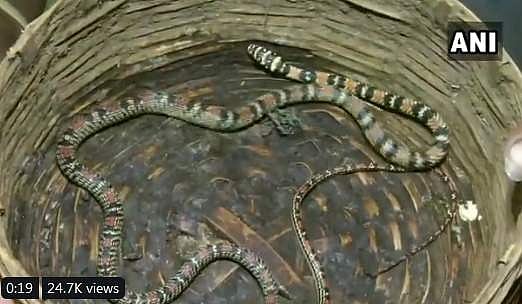 அந்த பாம்பை கூடையில் வைத்திருக்கும் விடியோ ஏஎன்ஐயில் வெளியாகியுள்ளது.